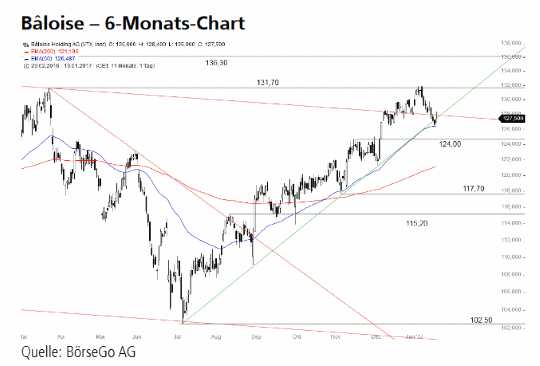Rückblick: Seit Juli des vergangenen Jahres befinden sich die Aktien von Bâloise wieder in Bullenhand und beendeten den vorherigen mittelfristigen Abwärtstrend auf Höhe der 100,00 CHF-Marke