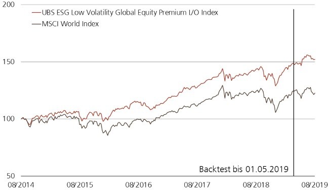 * Vergangene Wertentwicklungen sind keine Indikationen für zukünftige Wertentwicklungen. Die Wertentwicklung des UBS ESG Low Volatility Global Equity Premium L/O Index resultiert aus dem Backtesting von Daten und wurde von UBS in gutem Glauben und unter Anwendung standardisierter Methoden erstellt. Diese Methoden basieren auf eigenen Modellen, empirischen Daten, Annahmen und anderen Informationen, die wir für korrekt und angemessen erachten.