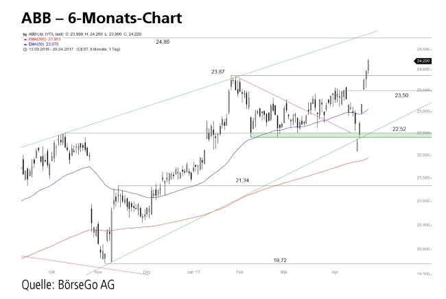 Bei den Aktien von ABB hat der Aufwärtstrend neuen