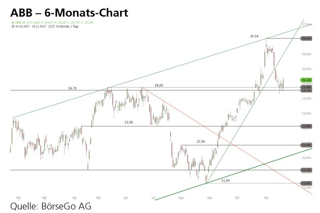 Rückblick: Die Aktien von ABB bewegten sich in den vergangenen Jahren stark nach oben, nachdem bei 15,94 CHF im Januar 2016 ein wichtiges Zwischentief ausgebildet worden war.