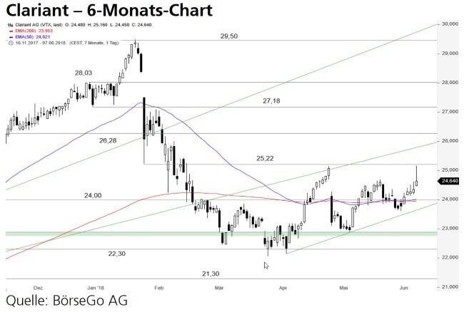 Rückblick: Mit dem Erreichen des langfristigen Widerstands bei 29,50 CHF endete eine mittelfristige Rallyphase bei den Aktien von Clariant zu Beginn des Jahres und der Wert ging nahtlos in einen steilen Ausverkauf über.