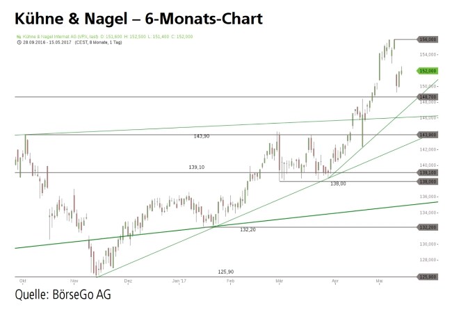 es Kühne & Nagel, sich auch über die 156,00 CHF-Marke auf neue Hochs zu bewegen, wäre Spielraum bis zur Oberkante