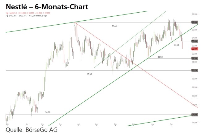 entscheidenden Unterstützung bei 80,05 CHF öffnen würde. Ein klarer Rückfall unter dieses Niveau, bei Abgaben unter die