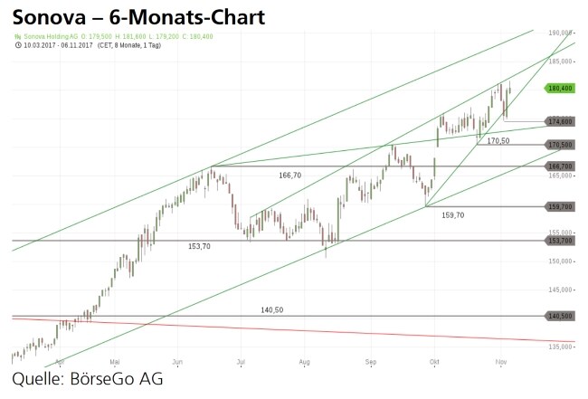 noch bei 166,00 CHF verläuft. Sollte Sonova auch unter dieses