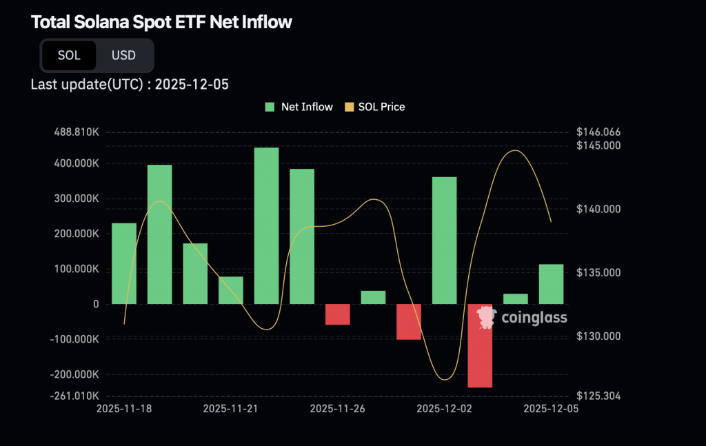 (Kapitalzuflüsse bei den Spot Solana ETFs – Quelle: Coinglass)
