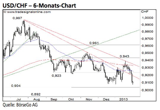 Rückblick: Das Devisenpaar USD/CHF konnte bis zum Juli vergangenen Jahres in einem steilen Aufwärtstrend in den Bereich des langfristigen Widerstands bei 1,005 CHF ansteigen. An dieser...