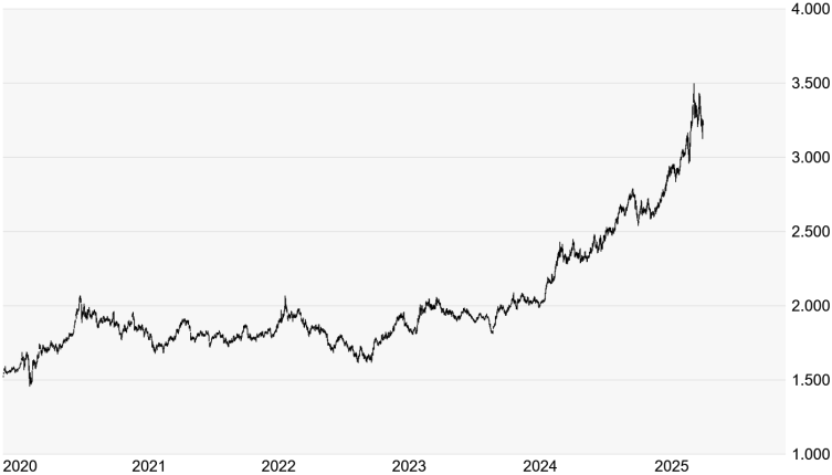 lediglich Momentaufnahmen sein. Die Auswirkungen des US-Zoll-Geplänkels sind noch nicht wirklich absehbar. Auch ist völlig unklar, wie sich die geopolitischen Brandherde weiter entwickeln werden. Zu beobachten ist zudem ein möglicher neuer Trend. Wie der World Gold Council jüngst berichtete, kam es im vergangenen Monat zu Netto-Zuflüssen in den weltweiten Gold-ETFs von 115 Tonnen. Das war der fünfte Monatsanstieg der Gold-ETF-Bestände in Folge und zudem der stärkste seit mehr als drei