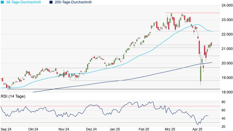 Nach zuletzt drei Anstiegen in Folge ging es für den DAX am Gründonnerstag um 105 Punkte oder 0,49 Prozent auf 21.206 Punkte abwärts. US-Präsident Donald Trump sagte zwar, dass erste Zoll-Gespräche mit Japan, China und Mexiko ermutigend verlaufen wären, doch wollten sich die Marktteilnehmer vor dem langen Osterwochenende Händlern zufolge nicht zu weit aus dem Fenster lehnen. Selbst eine weitere Leitzinssenkung seitens der Europäischen Zentralbank (EZB) konnte die Stimmung entscheidend