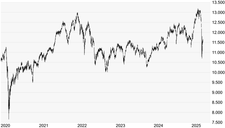 Tiefpunkte vom Dezember bei 11.248 Punkten und April 2024 bei 11.127 Punkten angesteuert werden könnten.